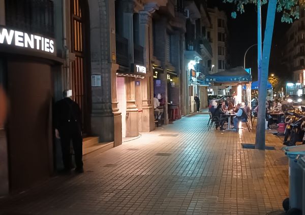 En el barrio del Raval (bajando Rambla a la derecha), aunque he dicho y sigo diciendo que no es muy aconsejable, sobre todo según que calles, la verdad es que hay bastante ambiente, y al final si sigues a Vicente (que siempre va donde está toda la gente), tampoco te va a llevar a un callejón oscuro donde te violen. Quizás el ambiente es más underground y más canalla, y también muy turístico y multicultural. Te encuentras tanto a nivel de locales nocturnos e incluso alguna discoteca, especialmente por la calle Joaquin Costa, como mucho terraceo sobre todo en la Rambla del Raval.